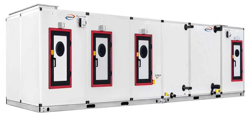 机组采用标准模数化设计,性能优越,结构简单,组合灵活,可广泛应用于需要空气集中处理的场合,如生产车间、商场、写字楼等,风量范围从1000~400000m3/h,根据不能的使用功能,有新回风混合段、表冷段、加热段、初、中、高 效过滤段、加湿段、消声段、热回收段、二次回风段、风机段、均流段等功能段可供选择,不同功能段的组合可满足不同的空气处理需求。